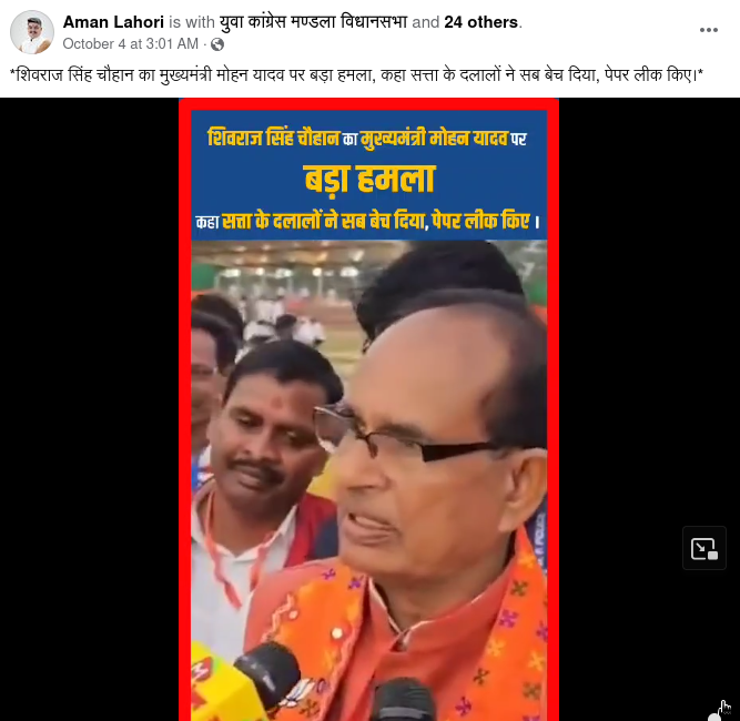 Video shows Indian ruling party politician criticising opposition leader, not party mate