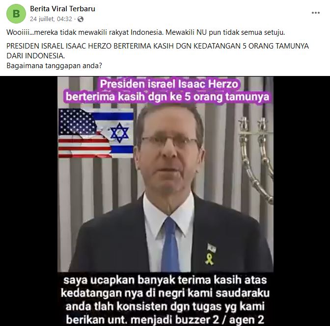 Video shows Israel president's independence day message, not thank you to Indonesian 'buzzers'