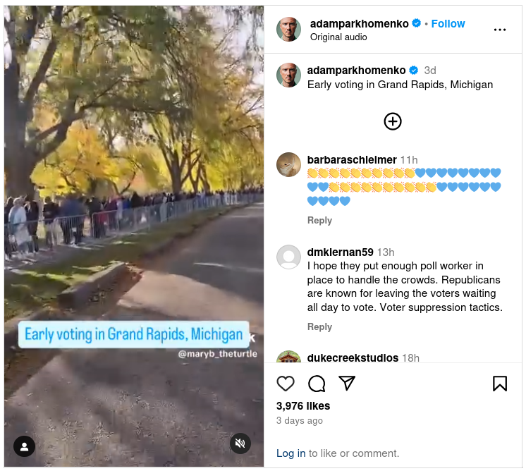An Oct. 18 Instagram post shows thousands of people waiting in a line that winds along a series of roadways...