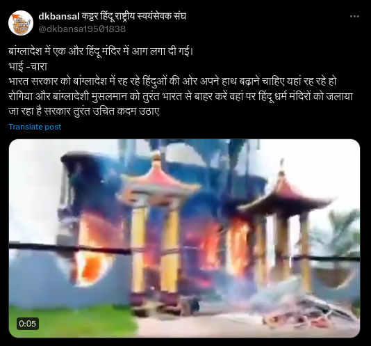 Video shows restaurant set on fire in Bangladesh during protests, not Hindu temple