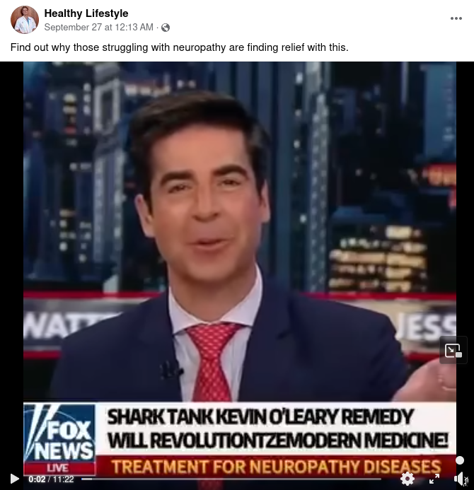 A Facebook video featuring Fox News anchor Jesse Watters and Shark Tank panelist and businessman Kevin O'Leary claims they endorse a drug that...
