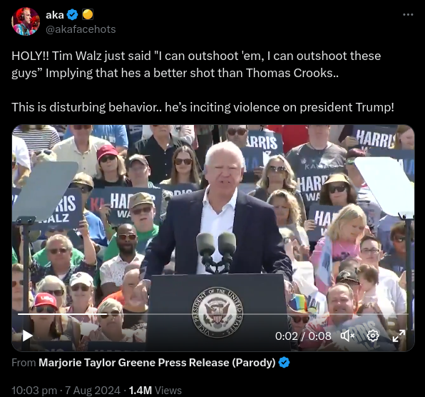 A video of Democratic vice-presidential candidate Tim Walz priding himself on his shooting skills during a campaign rally in Wisconsin has been ...