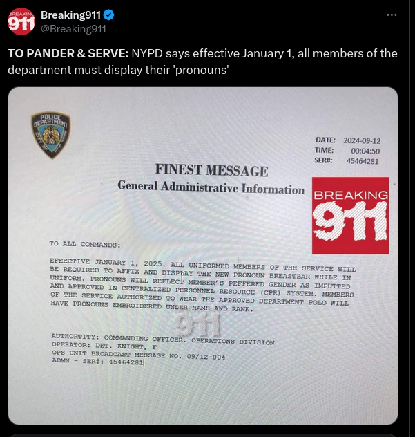 Will The NYPD Require Its Officers To Wear Their Pronouns On Their Uniforms?