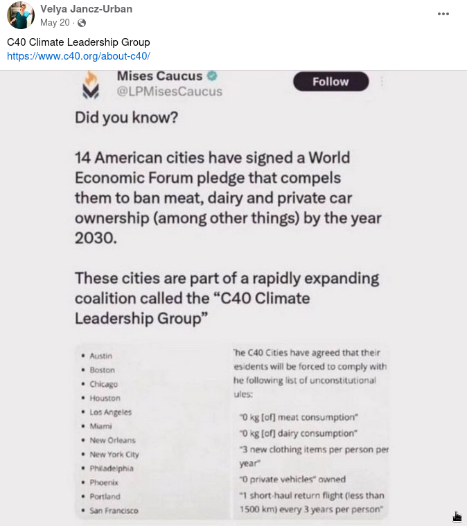 World’s major cities have not agreed to ban meat, dairy and cars