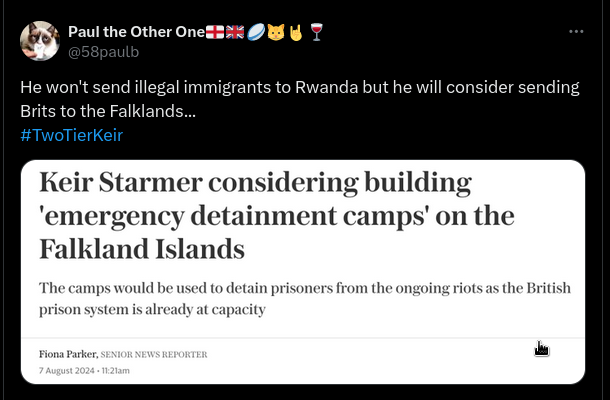 X Post Claims To Show Daily Telegraph Headline About Keir Starmer, ‘Emergency Detainment Camps’