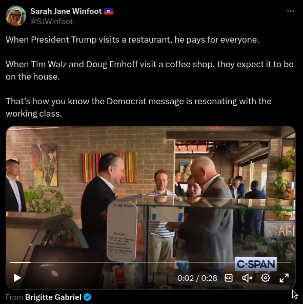 X Video Claims Tim Walz And Doug Emhoff Did Not Pay For Orders During Cafe Stop