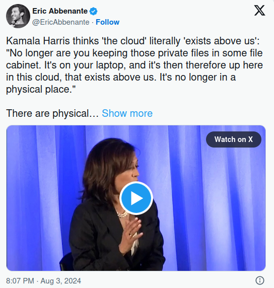 Yes, Kamala Harris Once Said Cloud Storage Exists 'Above Us,' Not in a 'Physical Place'