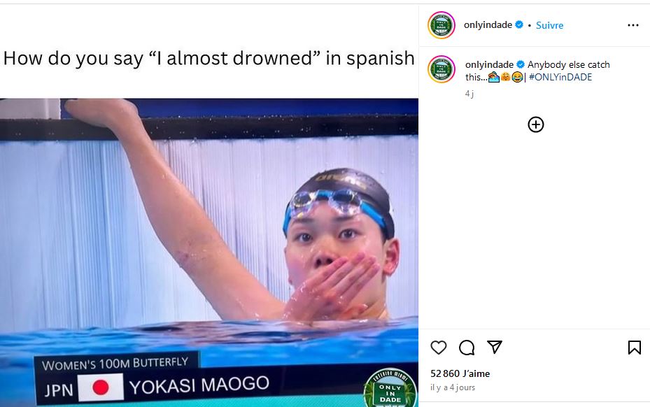 Does a swimmer on the 2024 Japanese Olympic team, Yokasi Maogo, have a name that sounds like the phrase "I almost drowned" in Spanish? No, that's...
